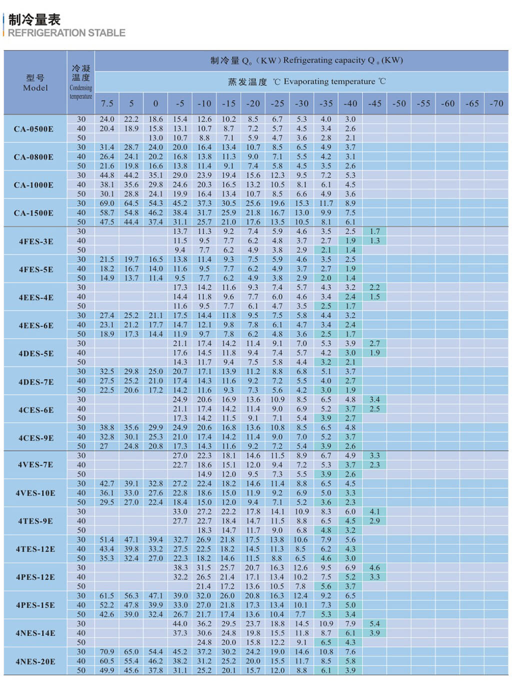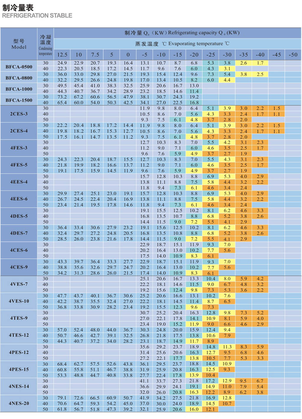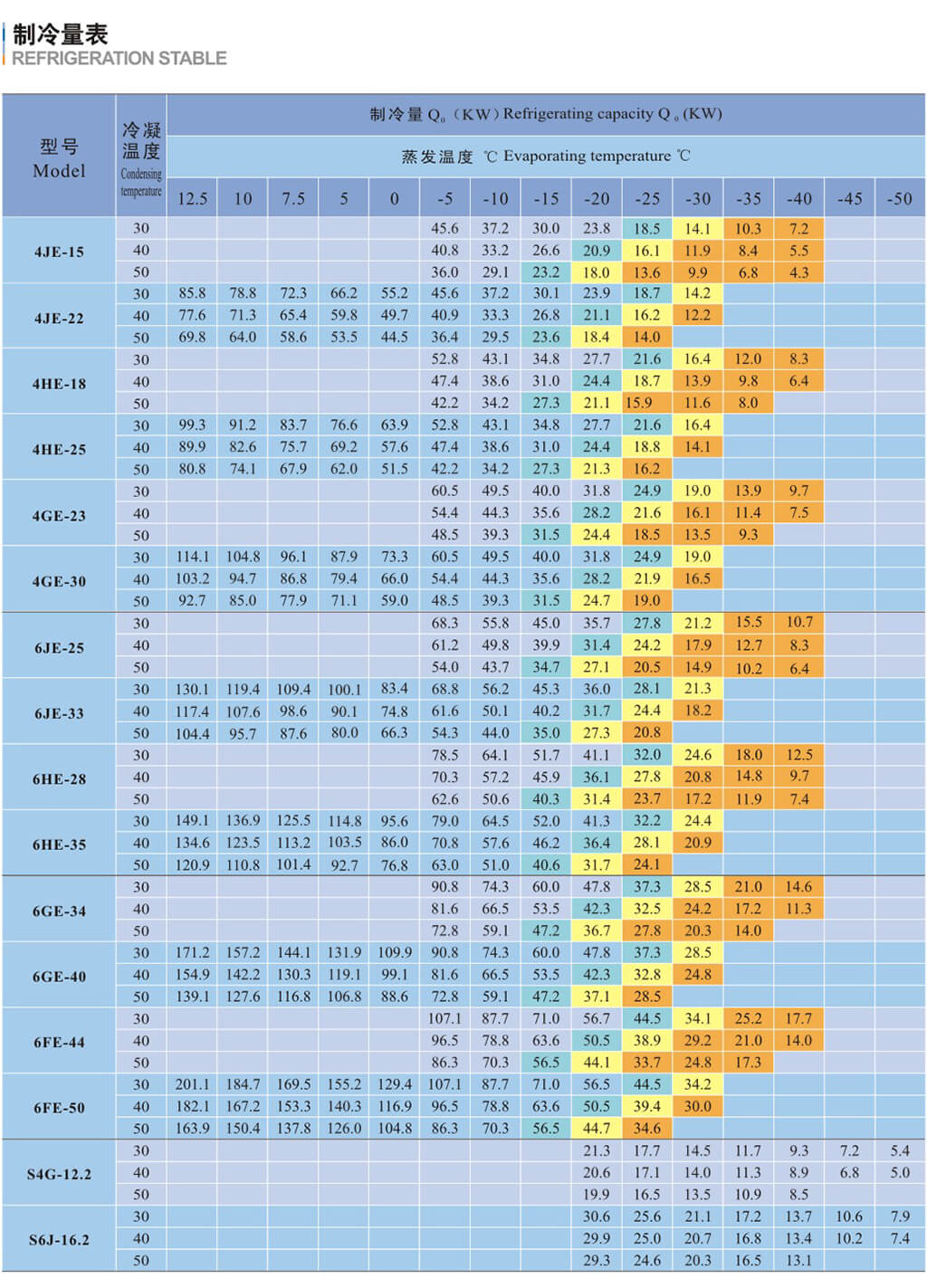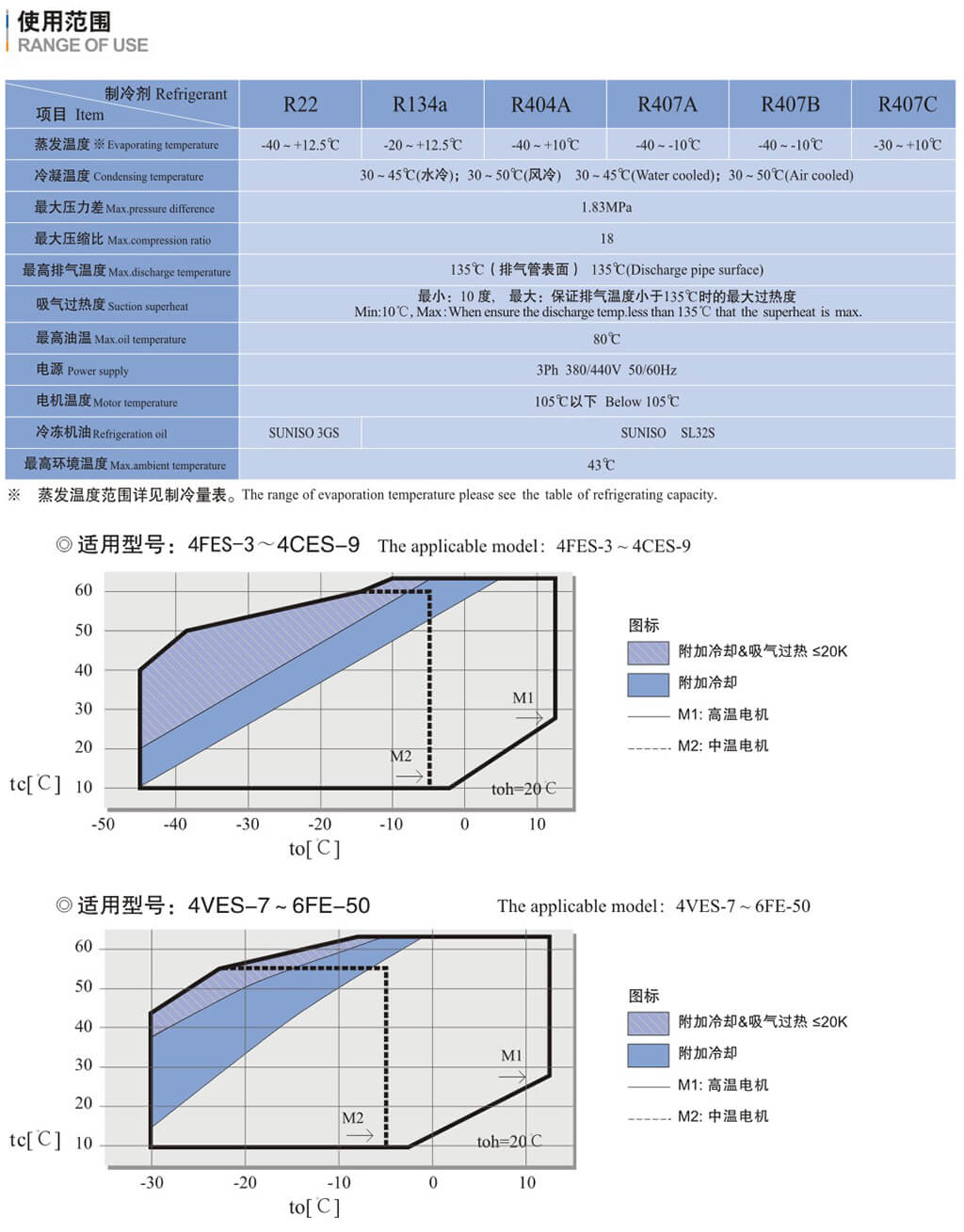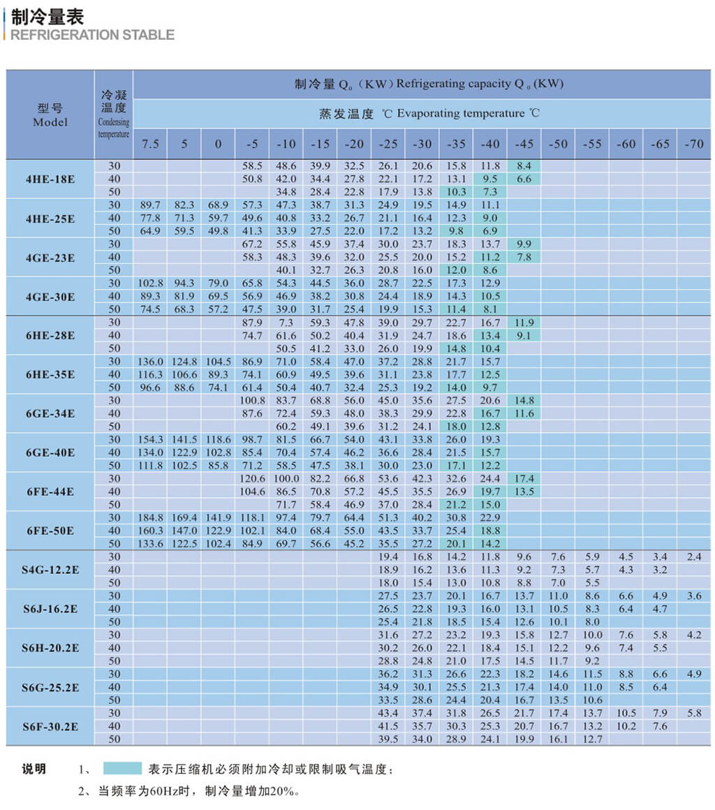基于吸氣溫度20C,液體沒(méi)有過(guò)冷,電機(jī)轉(zhuǎn)速=1450轉(zhuǎn)/分( 50Hz )